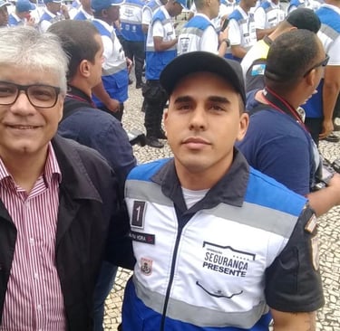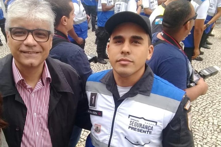 Marcus Vinicius - Presidente da Amal e o comandante, major Hora, na inauguração do Laranjeiras Presente. Em junho de 2019